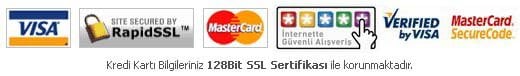 Sitemizden yapacağınız tüm alışverişlerde yüksek güvenlik standartları kullanılmaktadır. 128 Bit SSL ve 3D Secure servisleri ile kişisel bilgilerinizi ve kredi kartı bilgilerinizi riske atmadan s ...